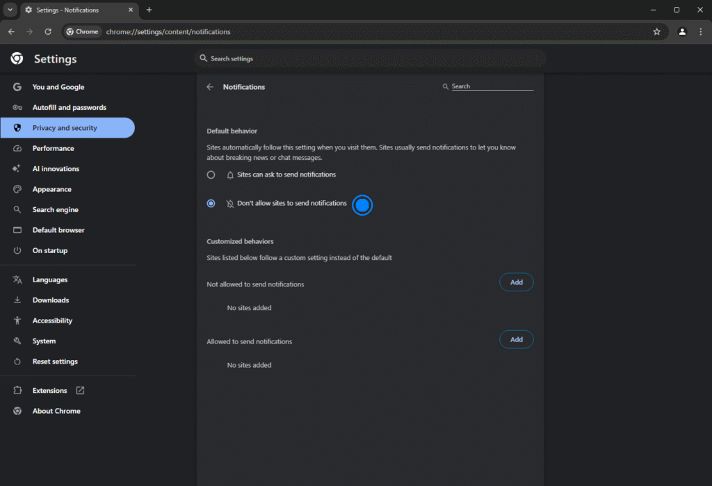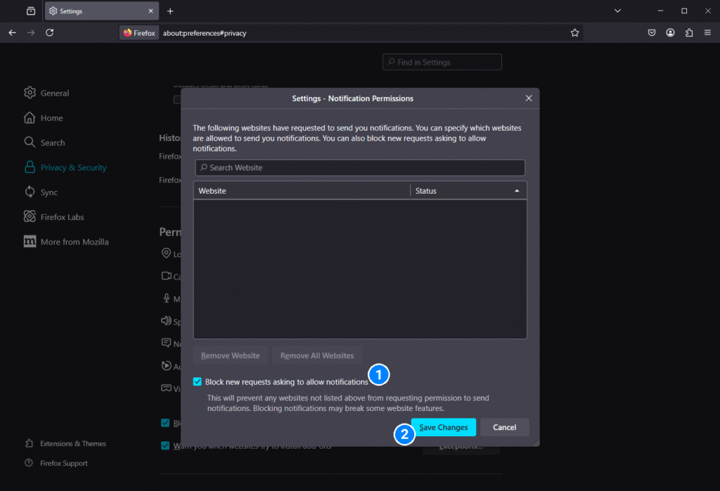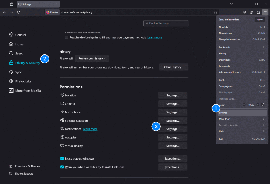 To avoid getting those fake “critical virus” notifications you saw earlier, it’s best to remove your browser’s ability to send you notifications. Here’s how to do it in 3 of the most popular browsers.
