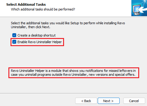 Finally, here’s an even sneakier one. This is from a program called “Revo Uninstaller”. So, the checkbox “Enable Revo Uninstaller Helper” looks appropriate!