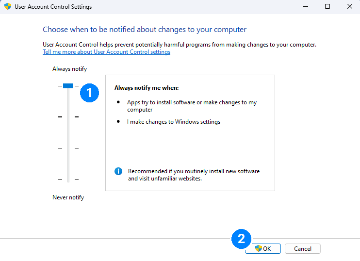 If you follow the above steps and don’t get a security prompt, it’s likely because you’re not logged in as an administrator. If that’s the case, you’re already protected against this bypass, so there’s nothing to worry about.